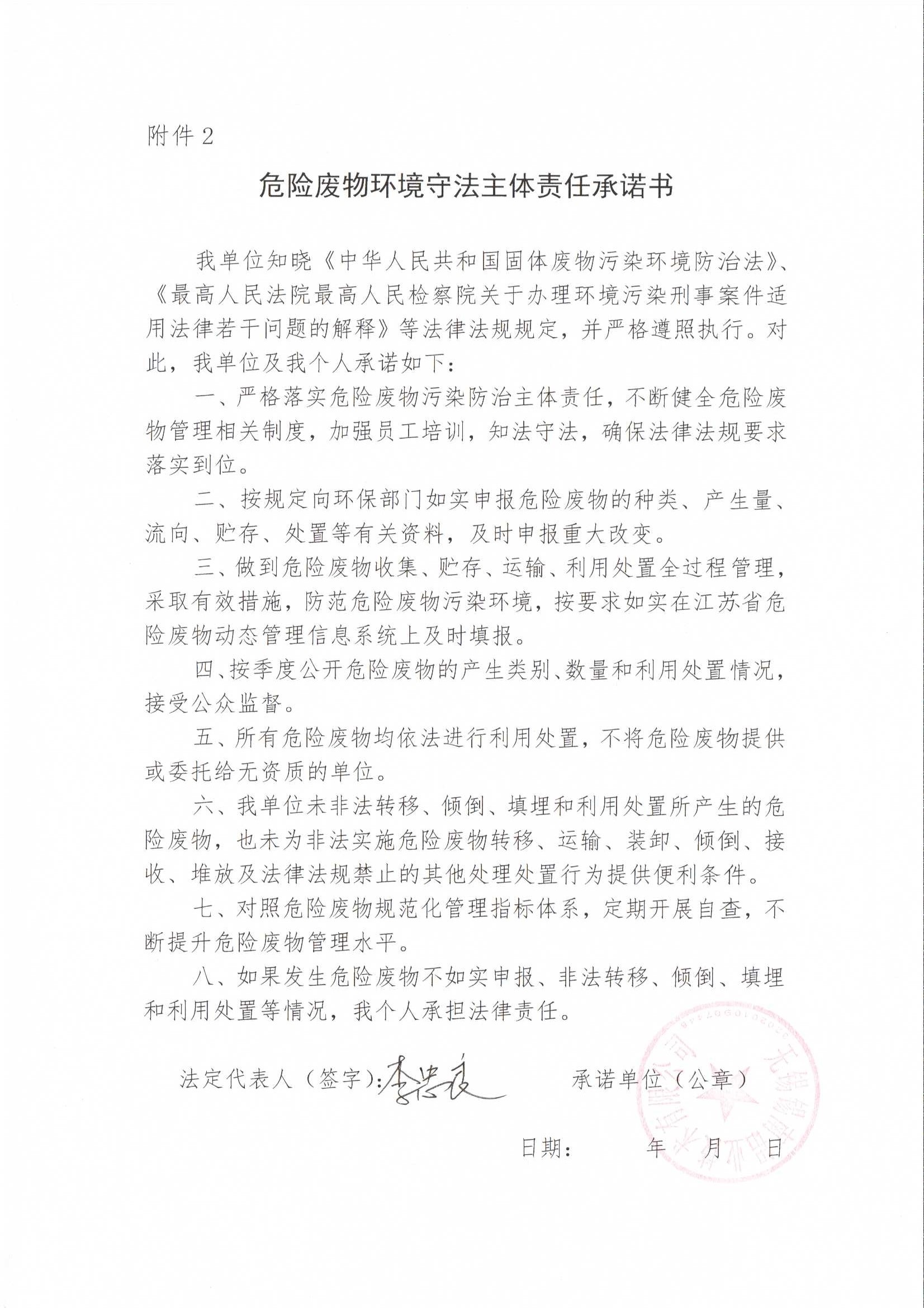 危險(xiǎn)廢物環(huán)境守法主體責(zé)任承諾書(shū)